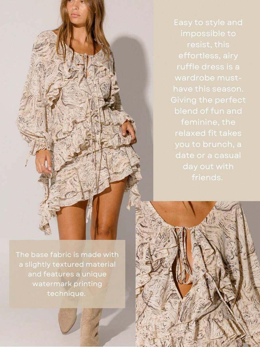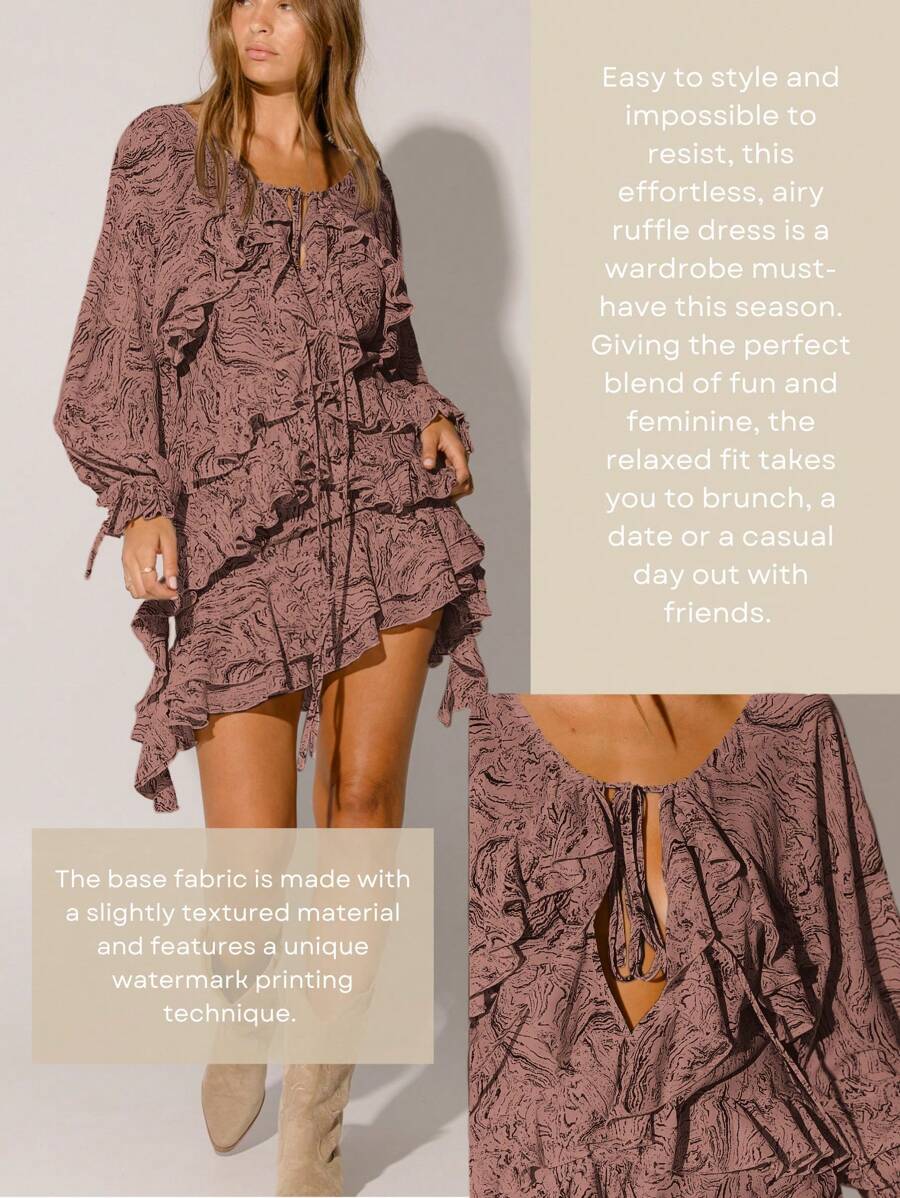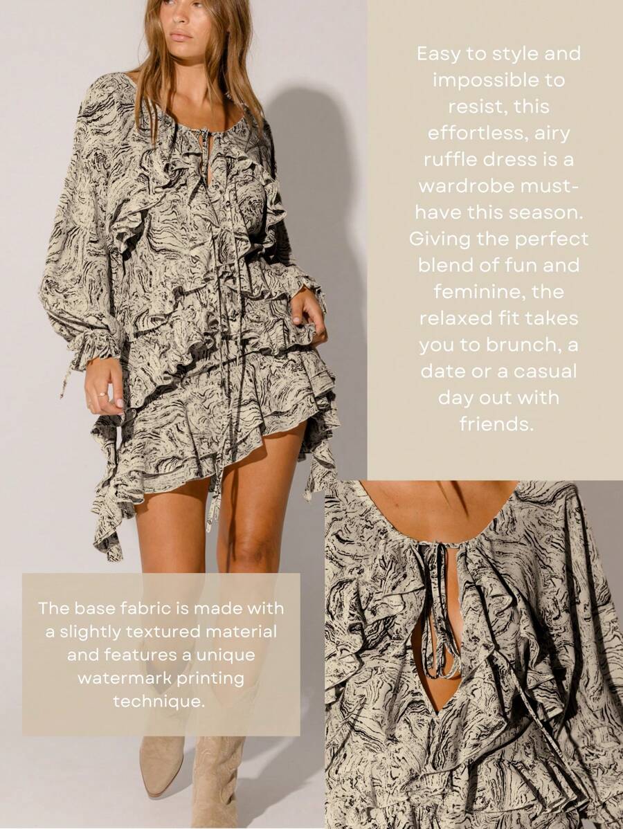 Step into a world of feminine grace and bohemian flair with our Floral Ruffle Tiered Flowy Silhouette Boho Style Long Sleeve Mini Dress. Perfect for brunches, garden parties, or a sunset stroll, this dress combines playful tiers, delicate ruffles, and a soft, breathable fabric that moves with you.