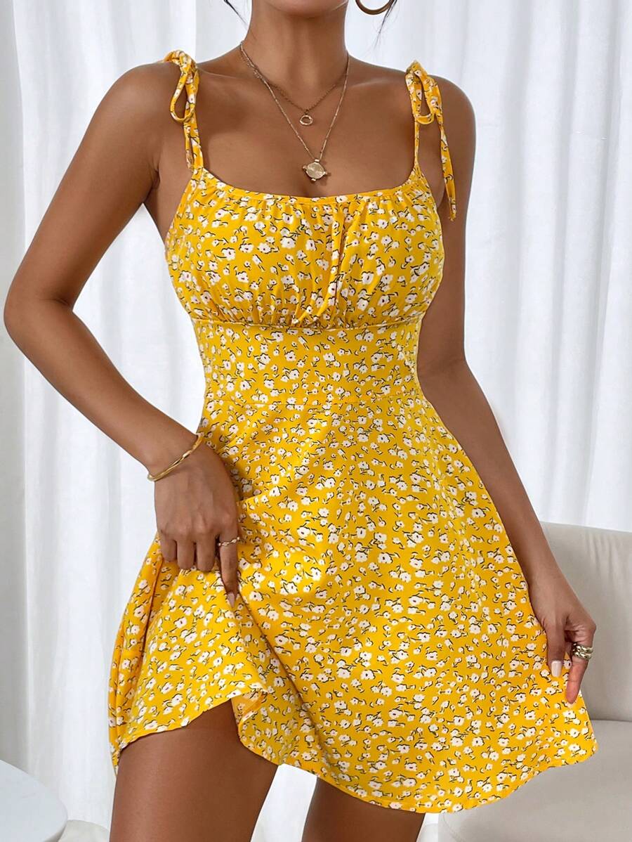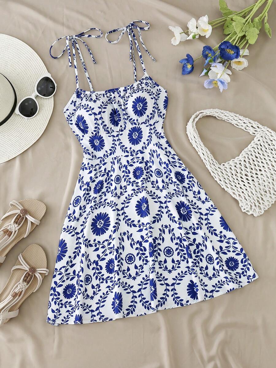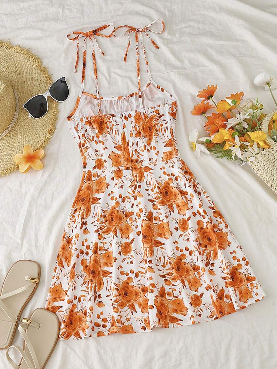 Step into sunshine-ready style with our Women's Summer Vacation Style Floral Print Spaghetti Dress.