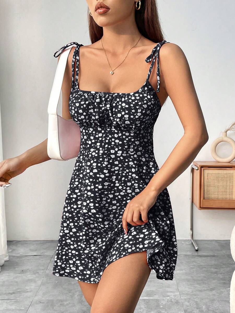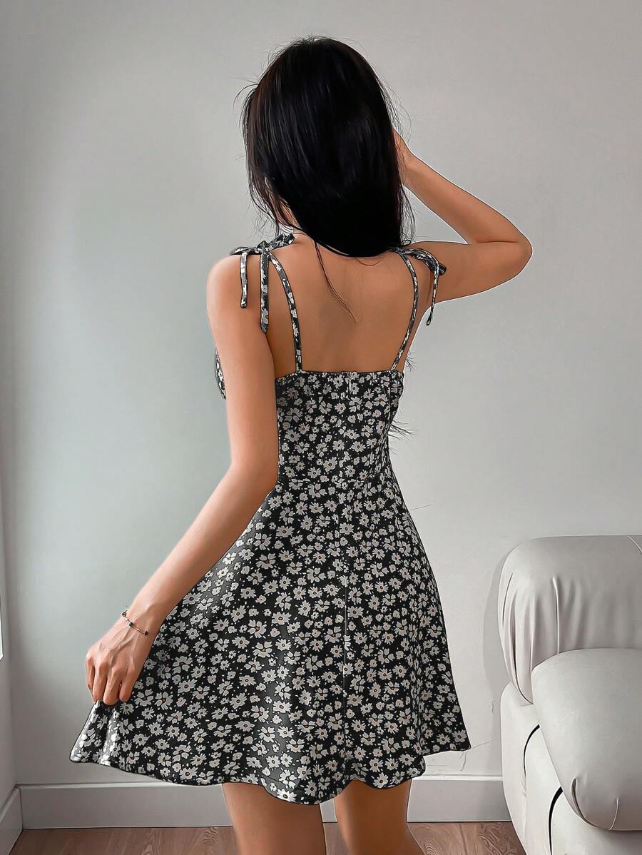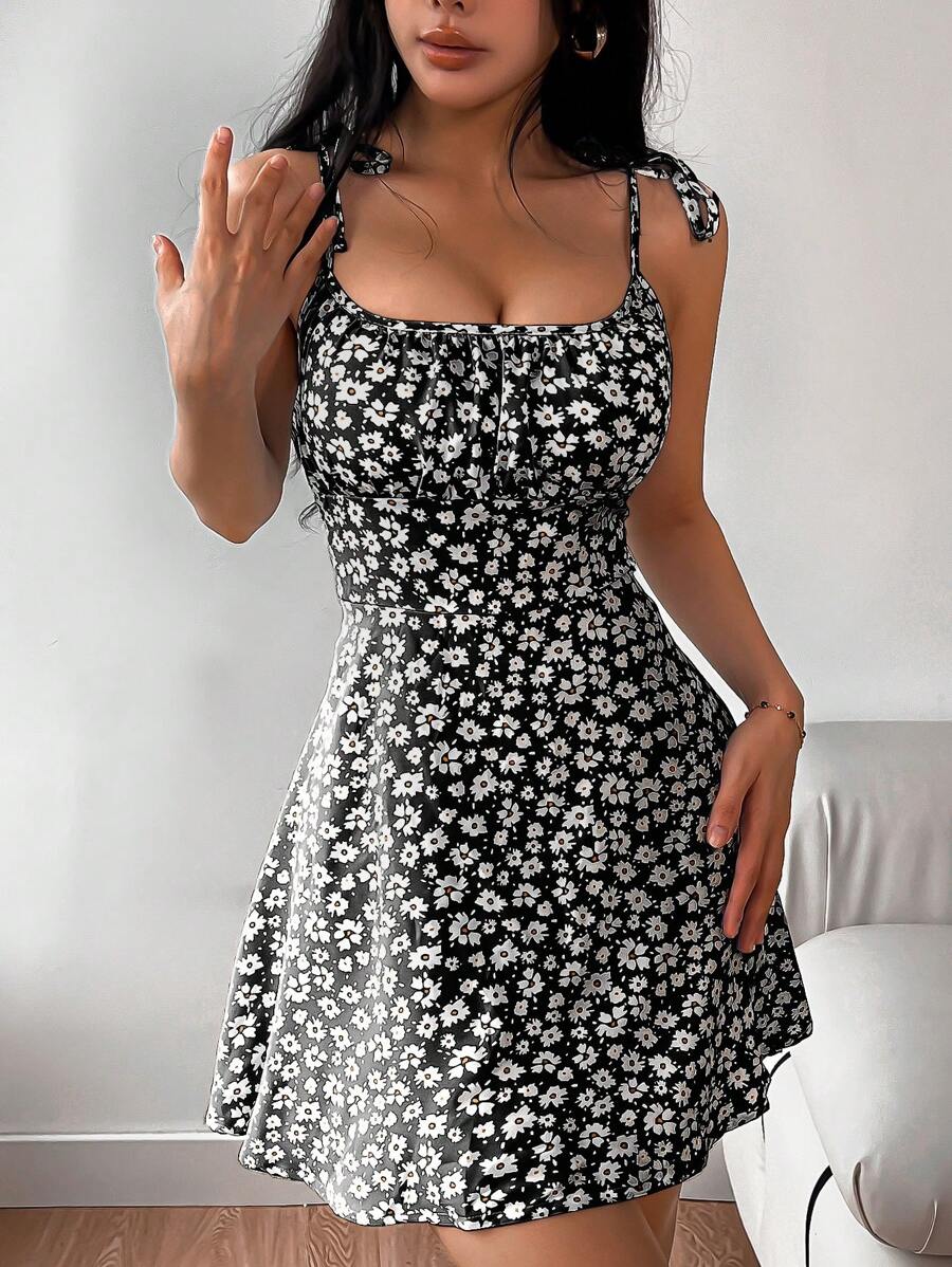 Step into sunshine-ready style with our Women's Summer Vacation Style Floral Print Spaghetti Dress.
