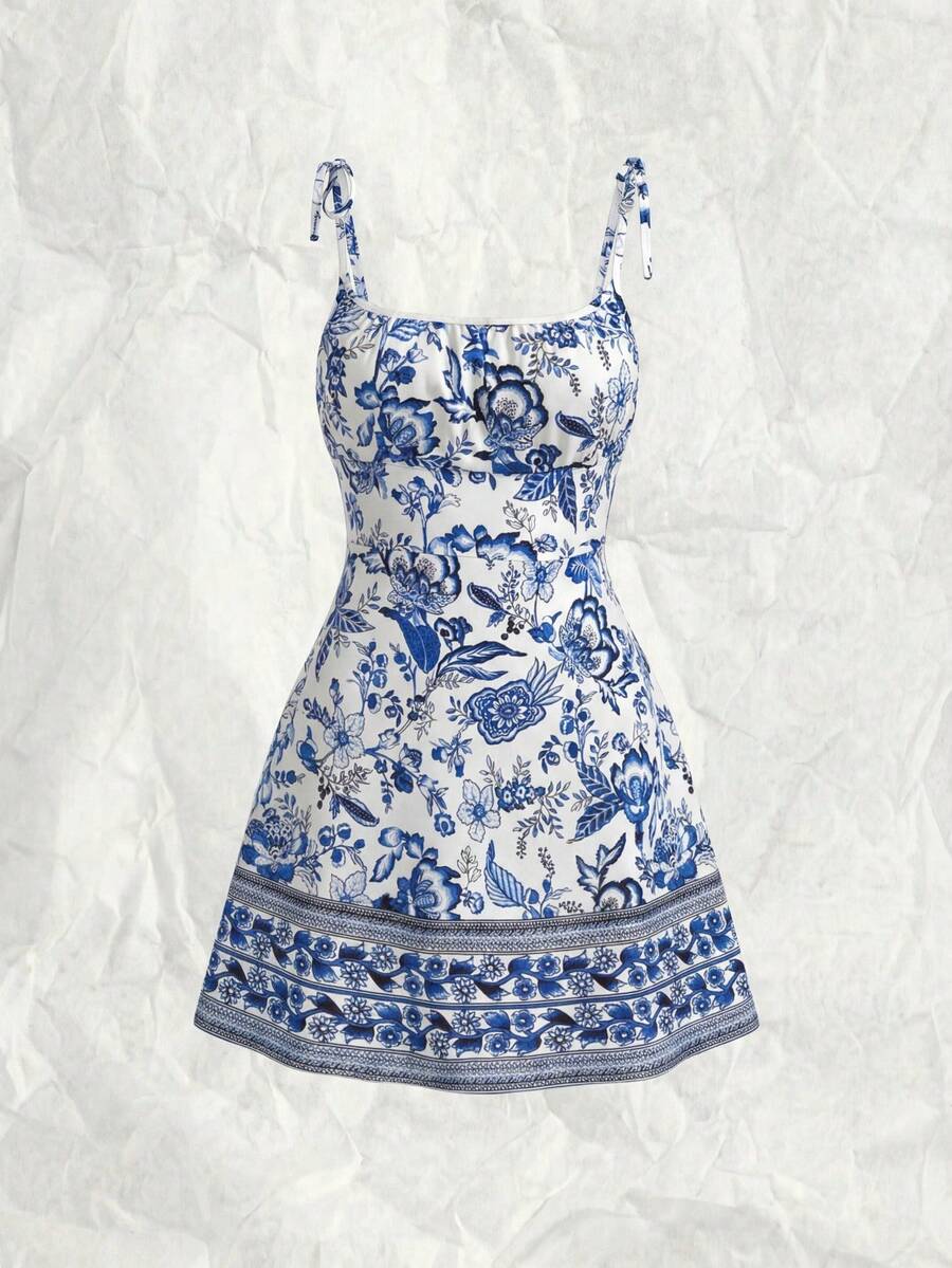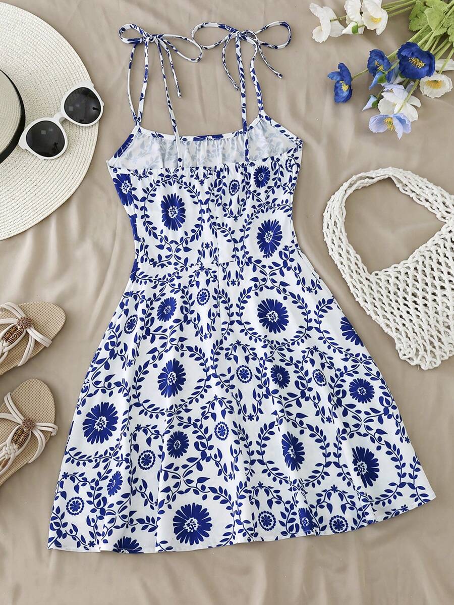 Women's Summer Vacation Style Floral Print Spaghetti Dress
