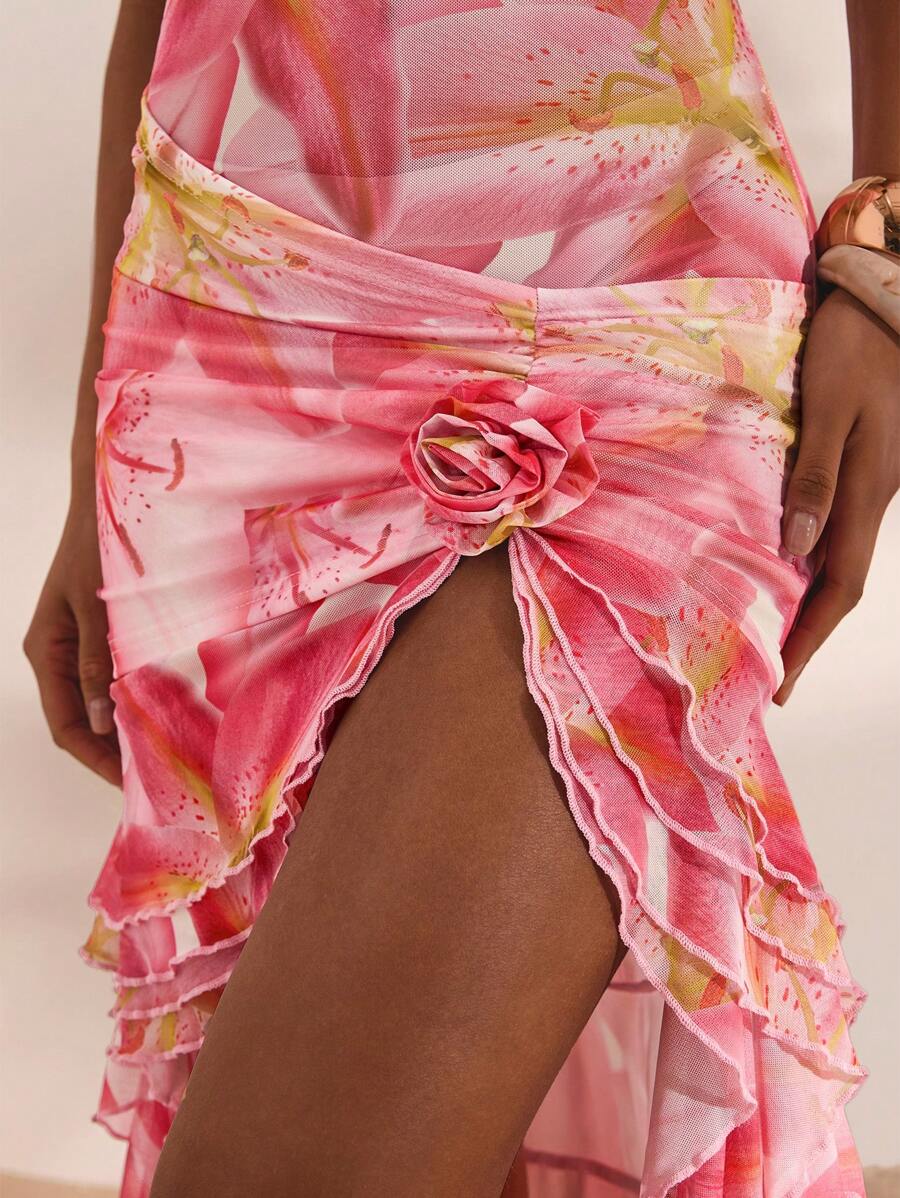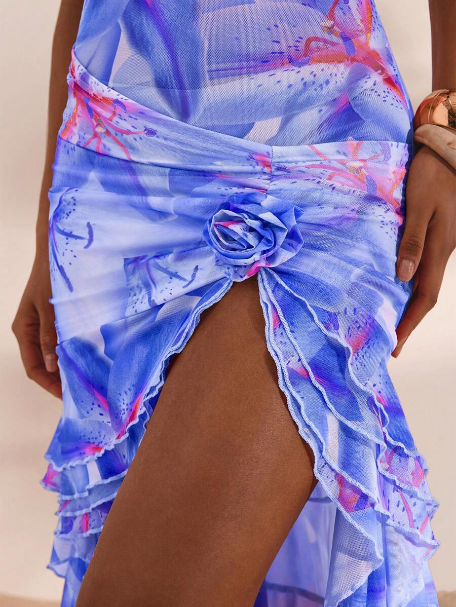 Stunning Women's Maxi Floral Print High Slit Layered Summer Dress