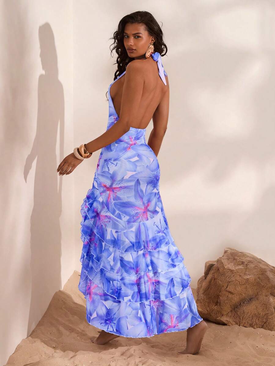 Step into summer in style with our Stunning Women's Maxi Floral Print High Slit Layered Summer Dress. Perfect for brunches, beach outings, garden parties, or evening strolls, this dress effortlessly blends elegance with comfort.