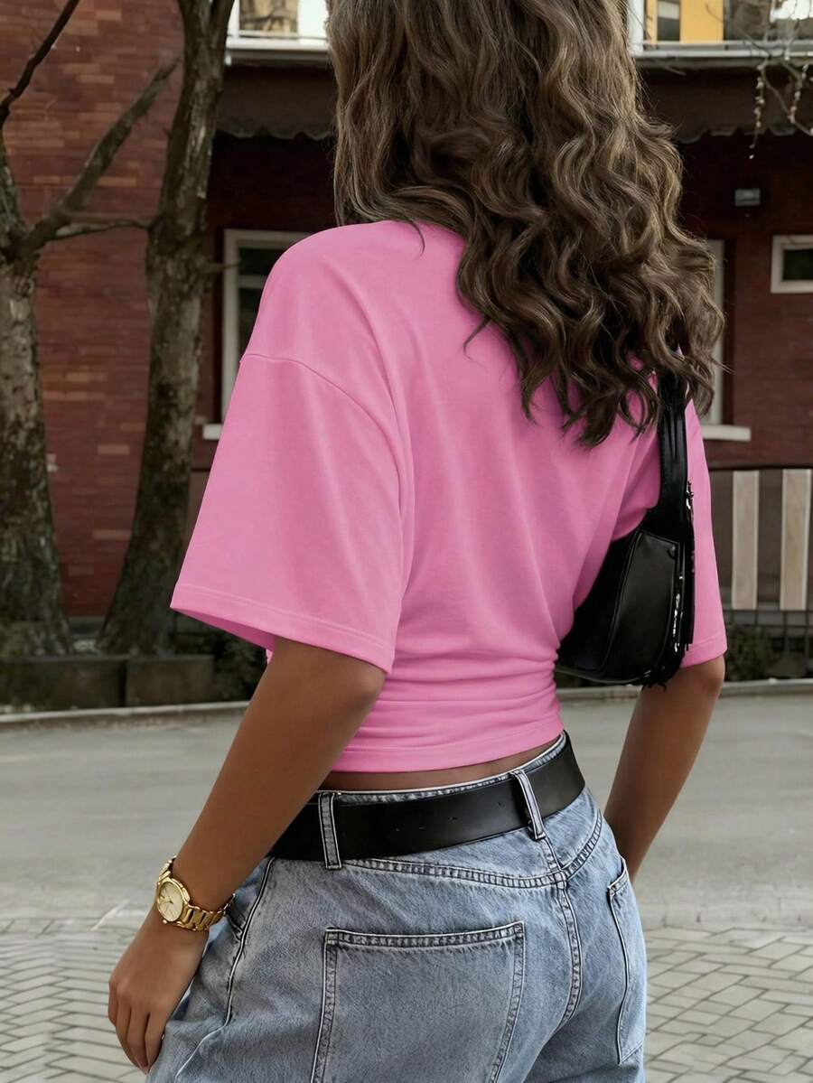 New Fashionable Elegant Solid Color Casual Versatile Waist Ruched T-Shirt