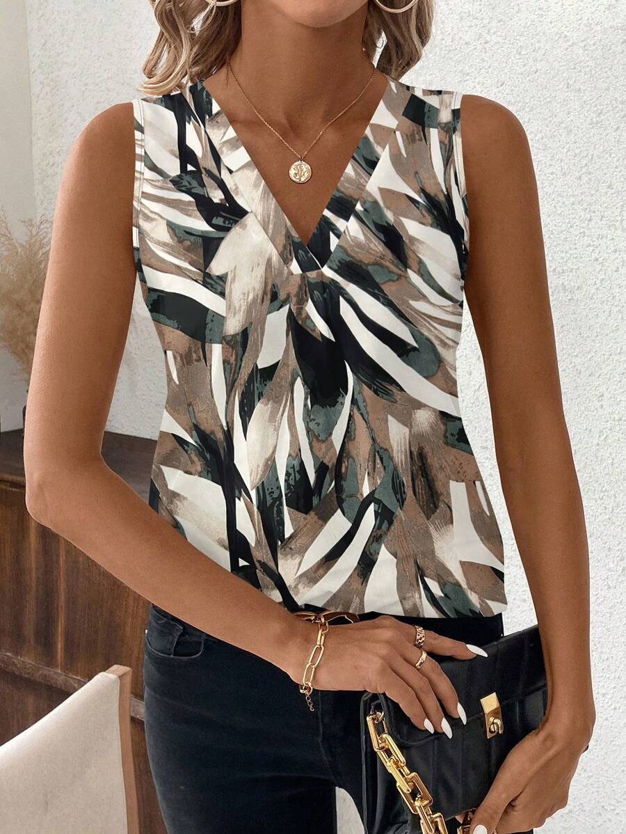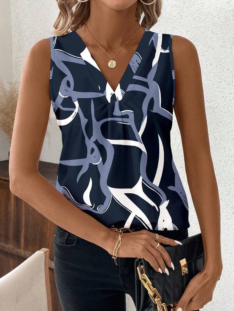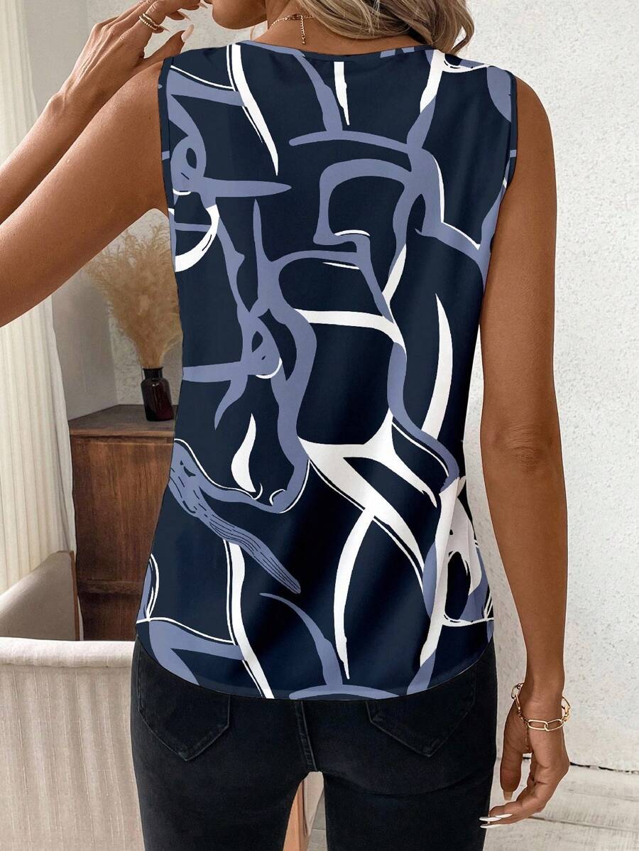 Elevate your everyday style with our Casual Asymmetrical Stripe V-Neck Sleeveless Top for Women.