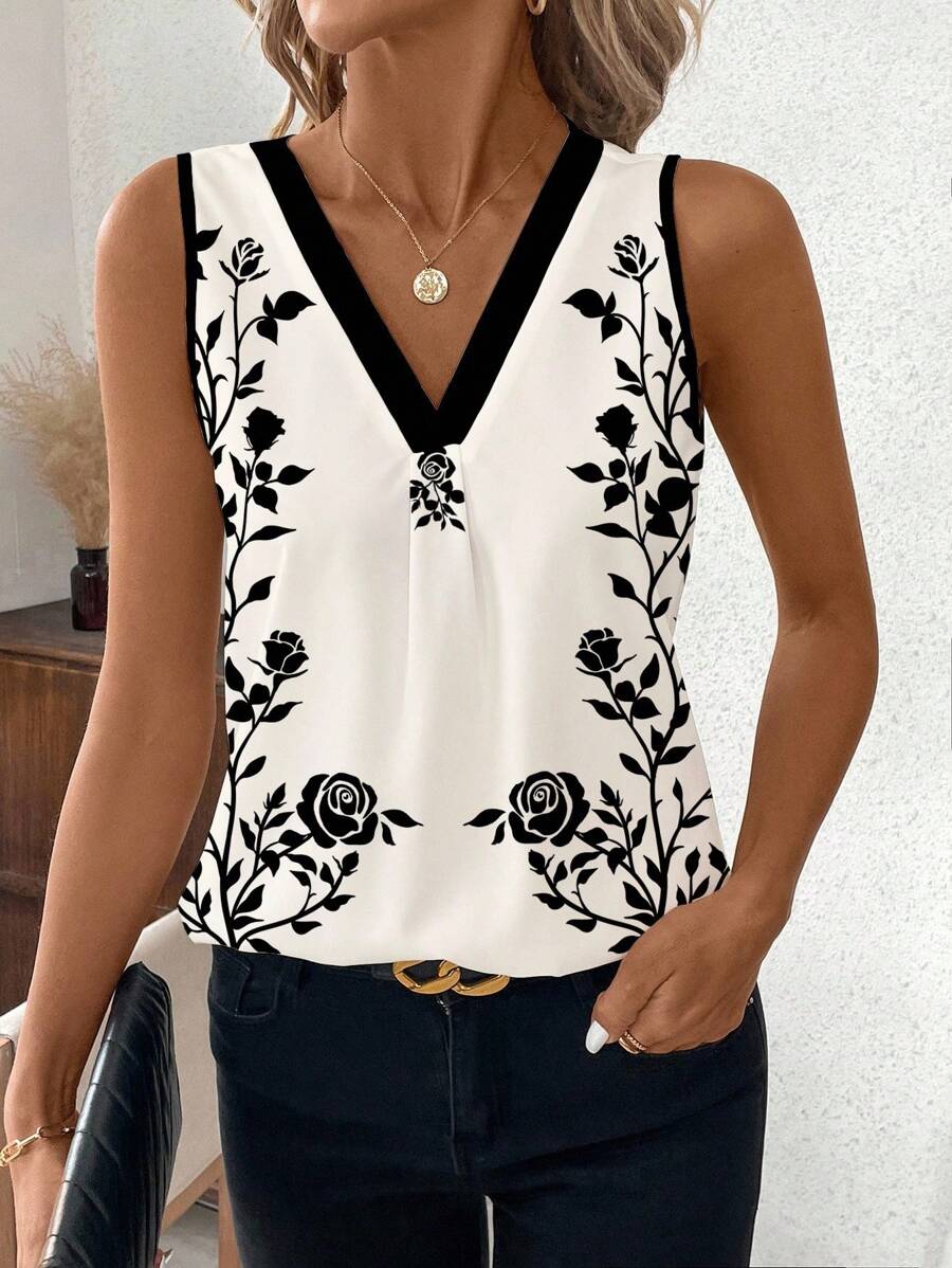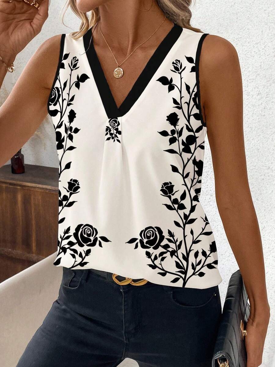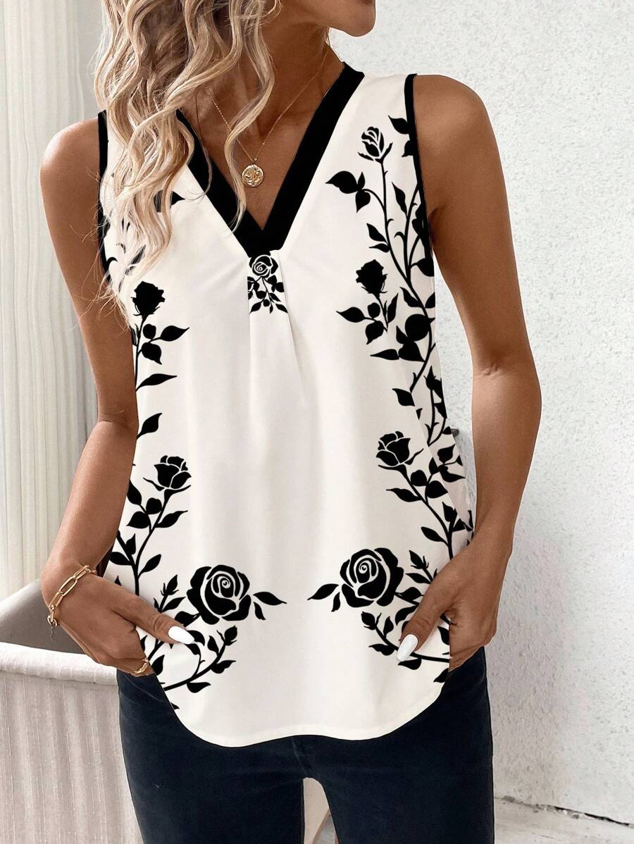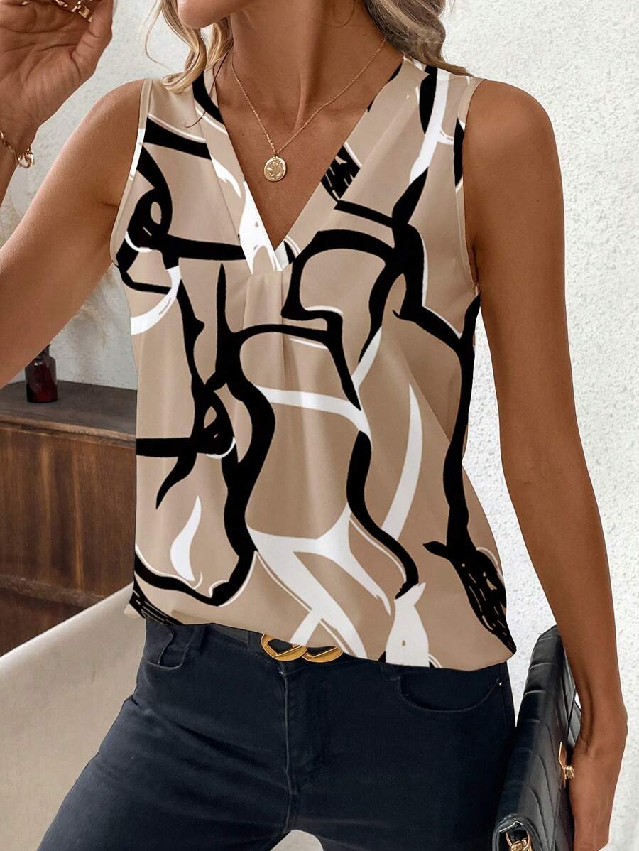 Elevate your everyday style with our Casual Asymmetrical Stripe V-Neck Sleeveless Top for Women.