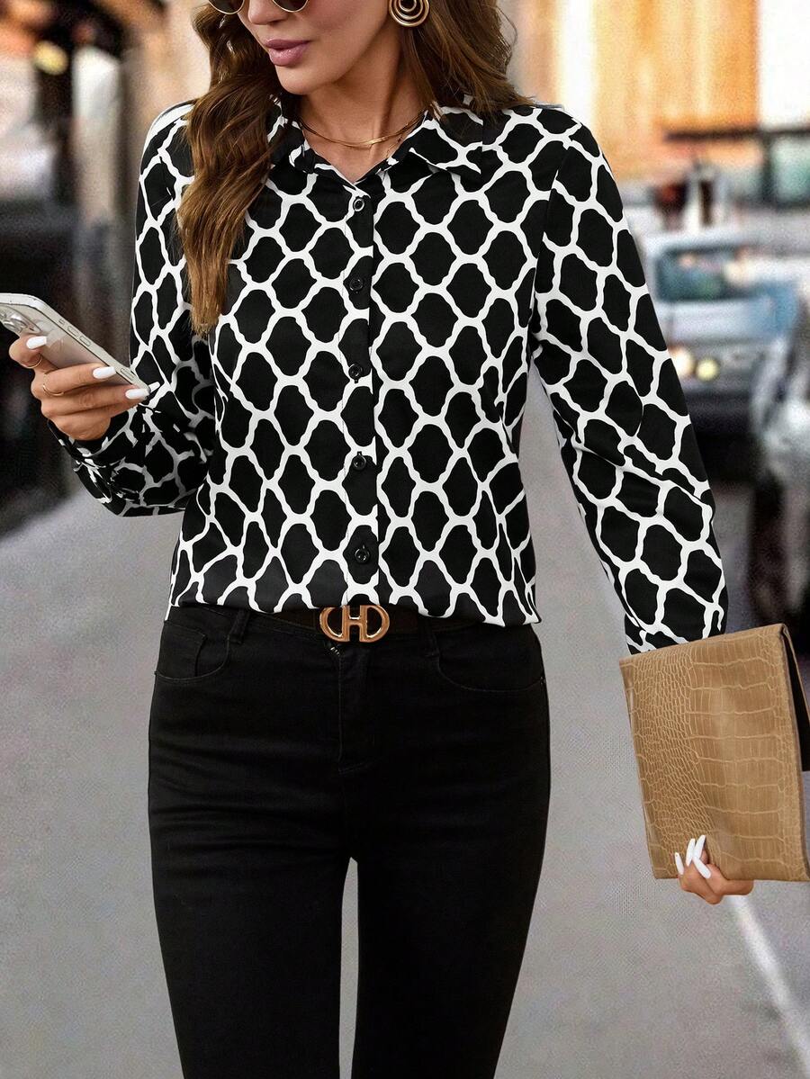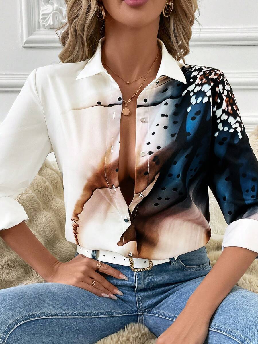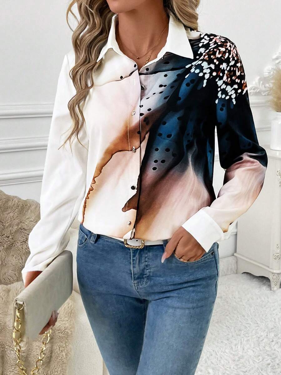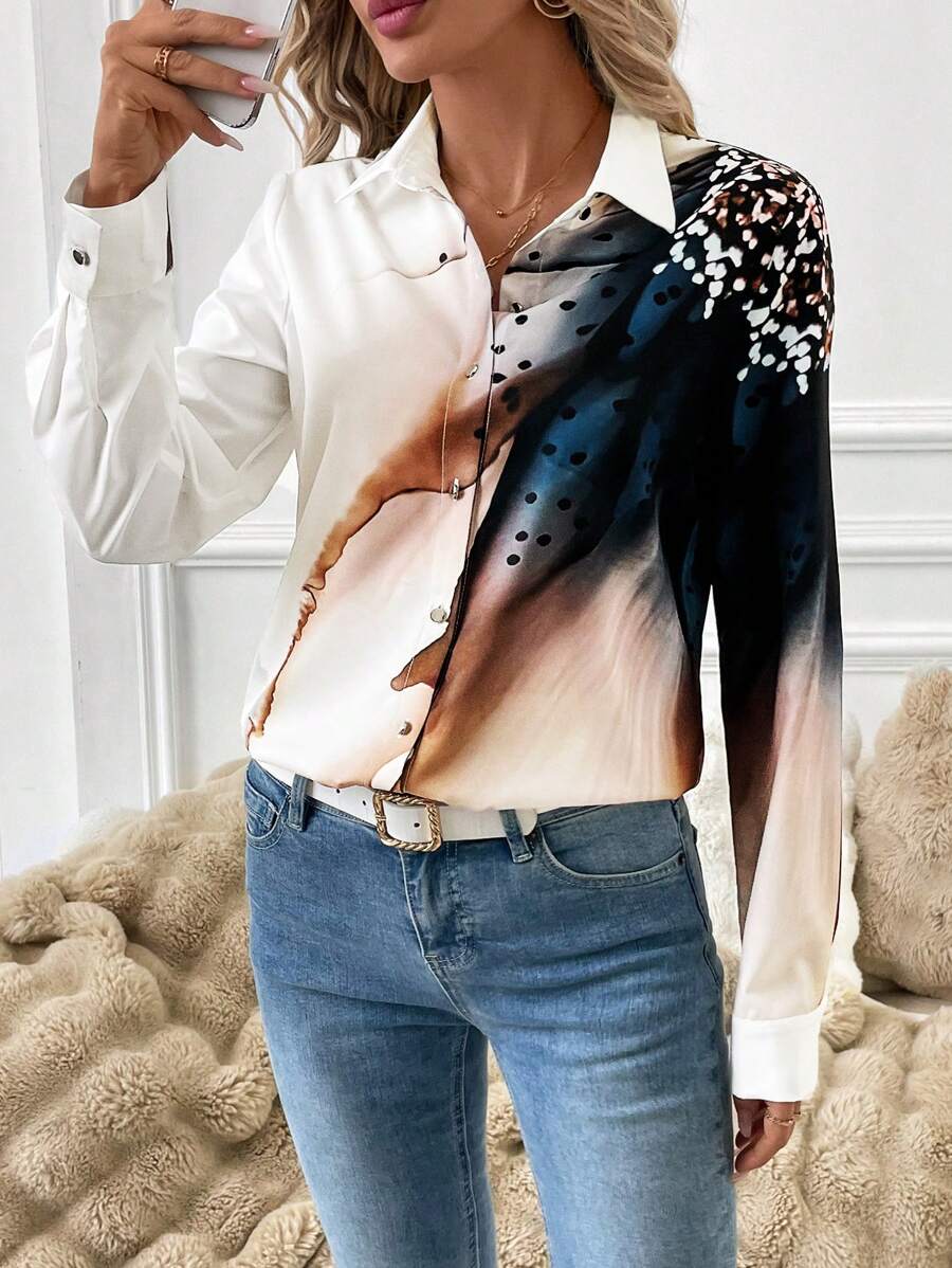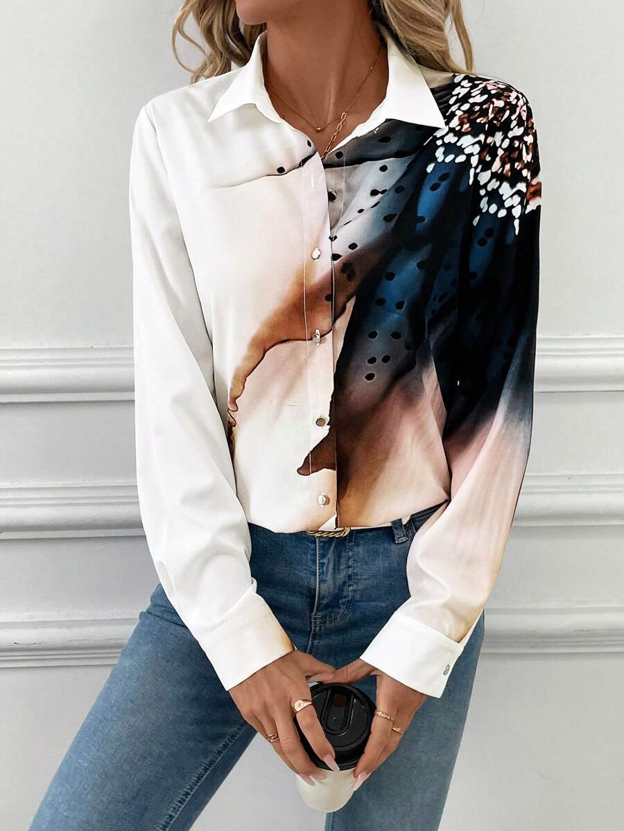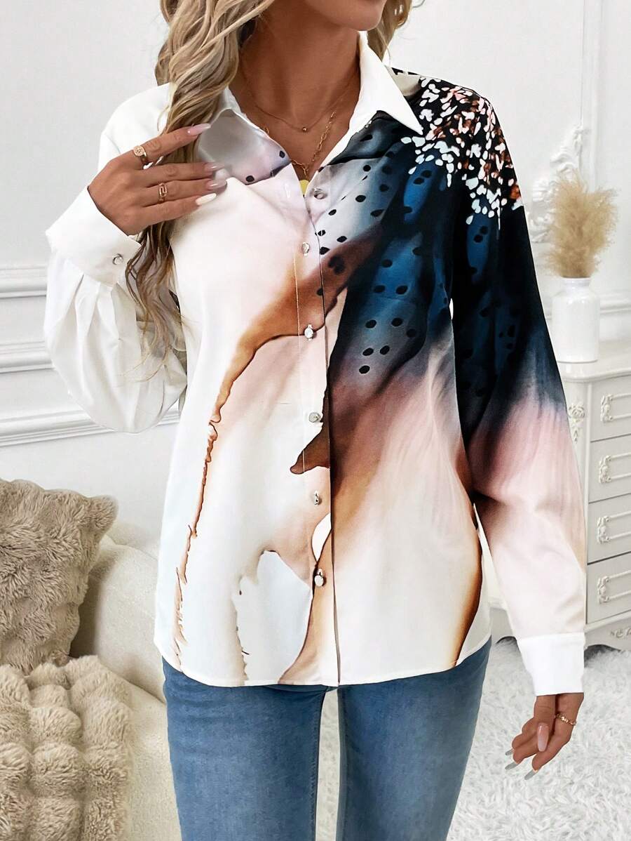 Women's Allover Print Button Up Long Sleeve Shirt