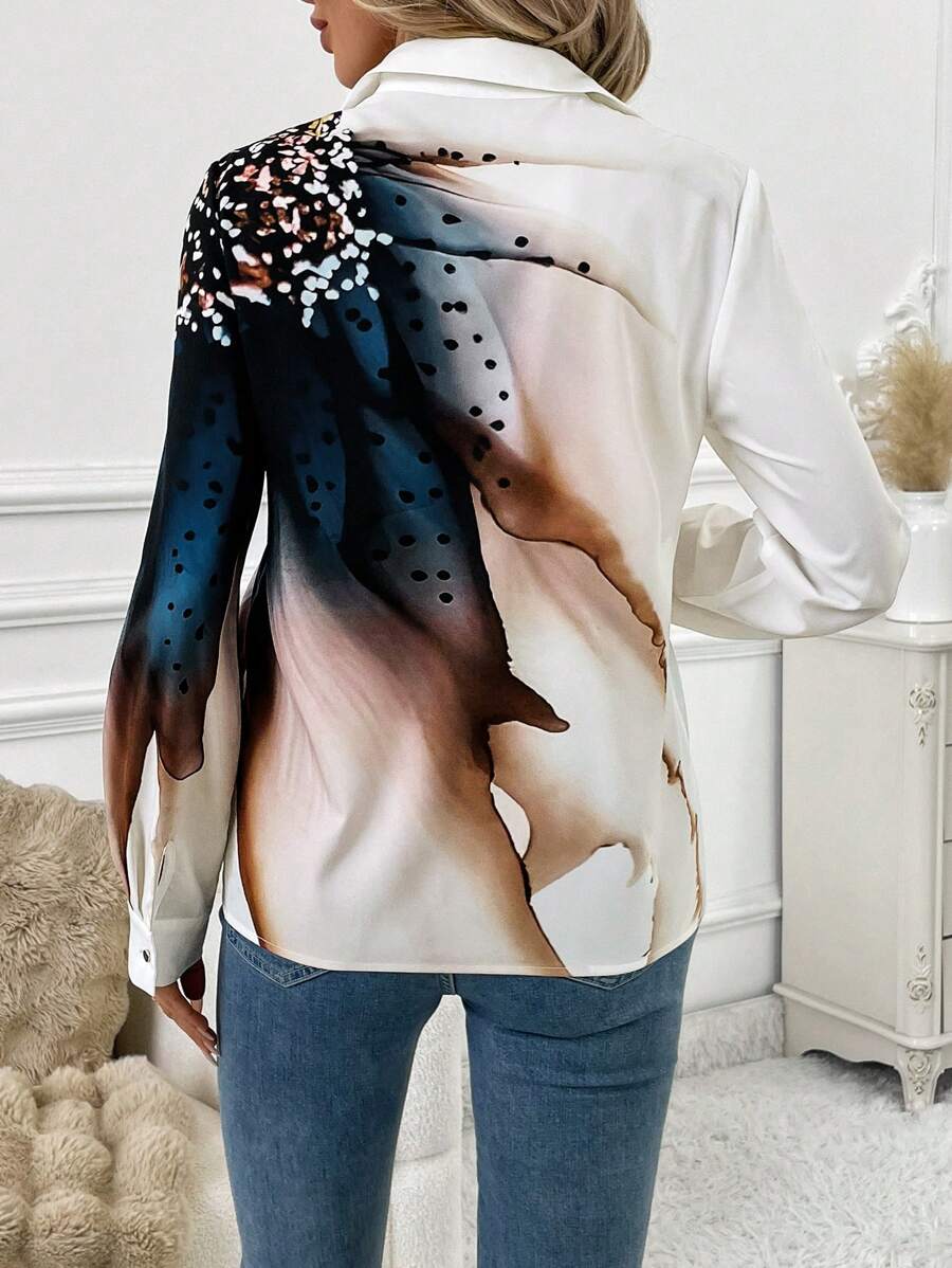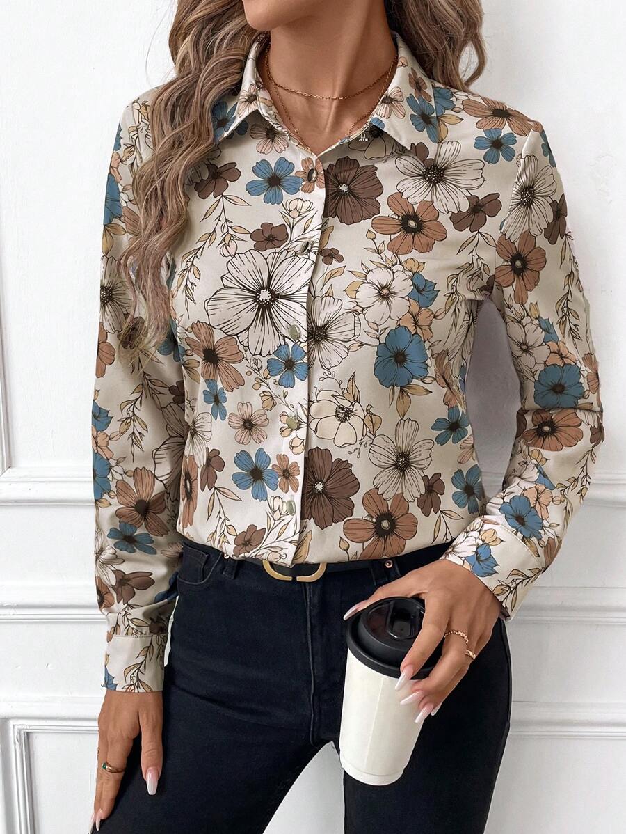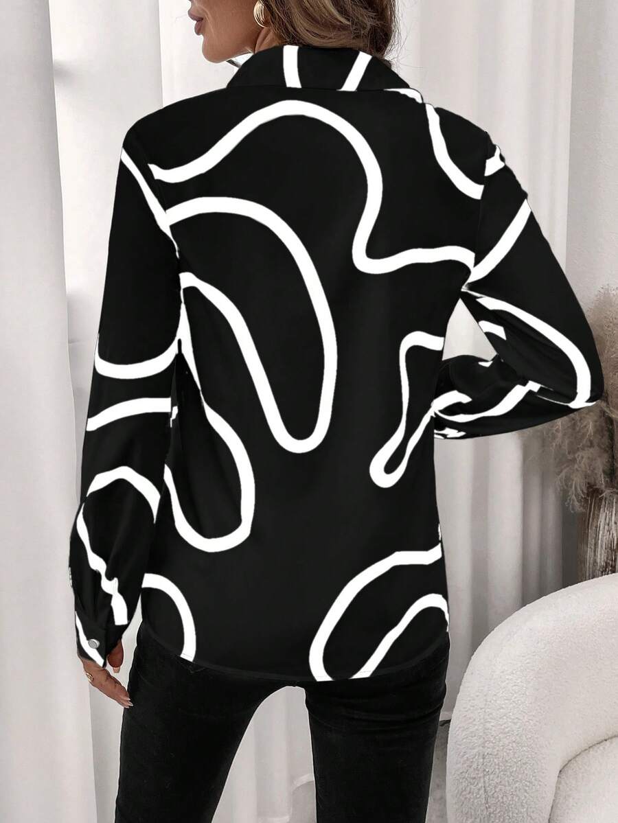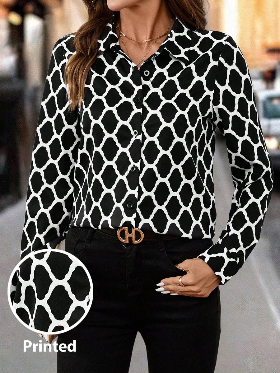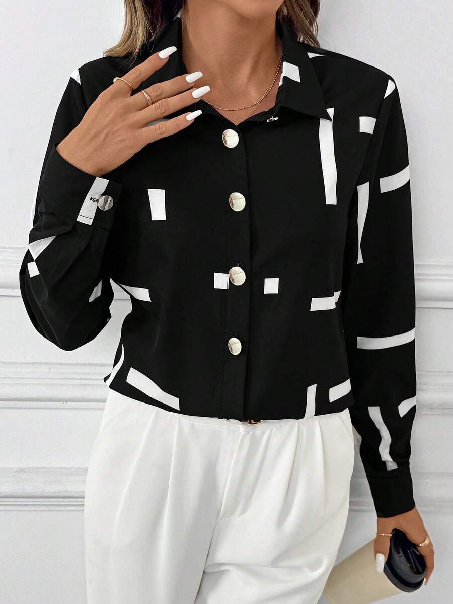 Women's Allover Print Button Up Long Sleeve Shirt