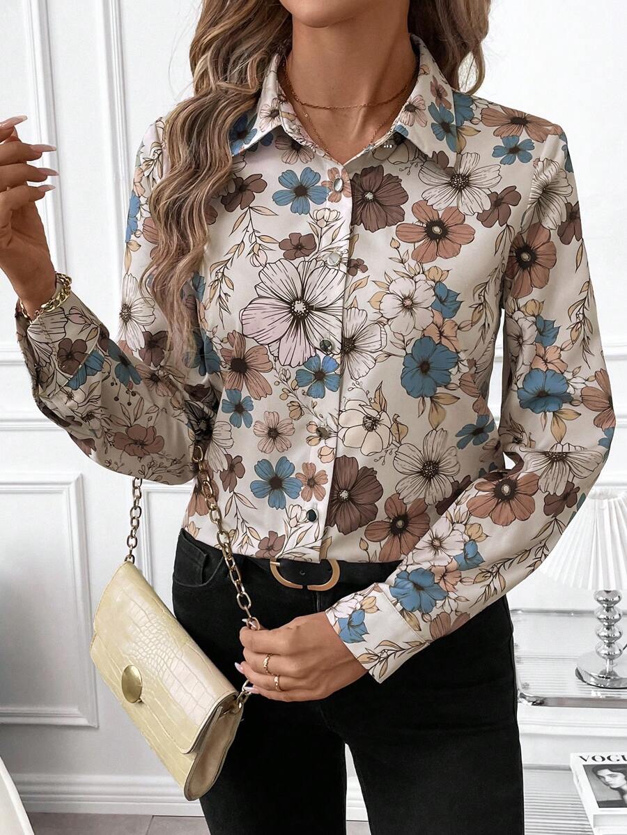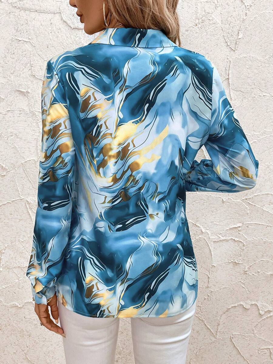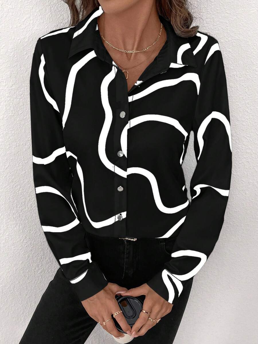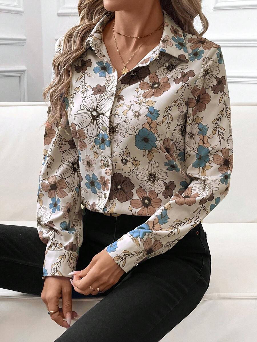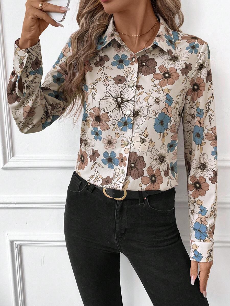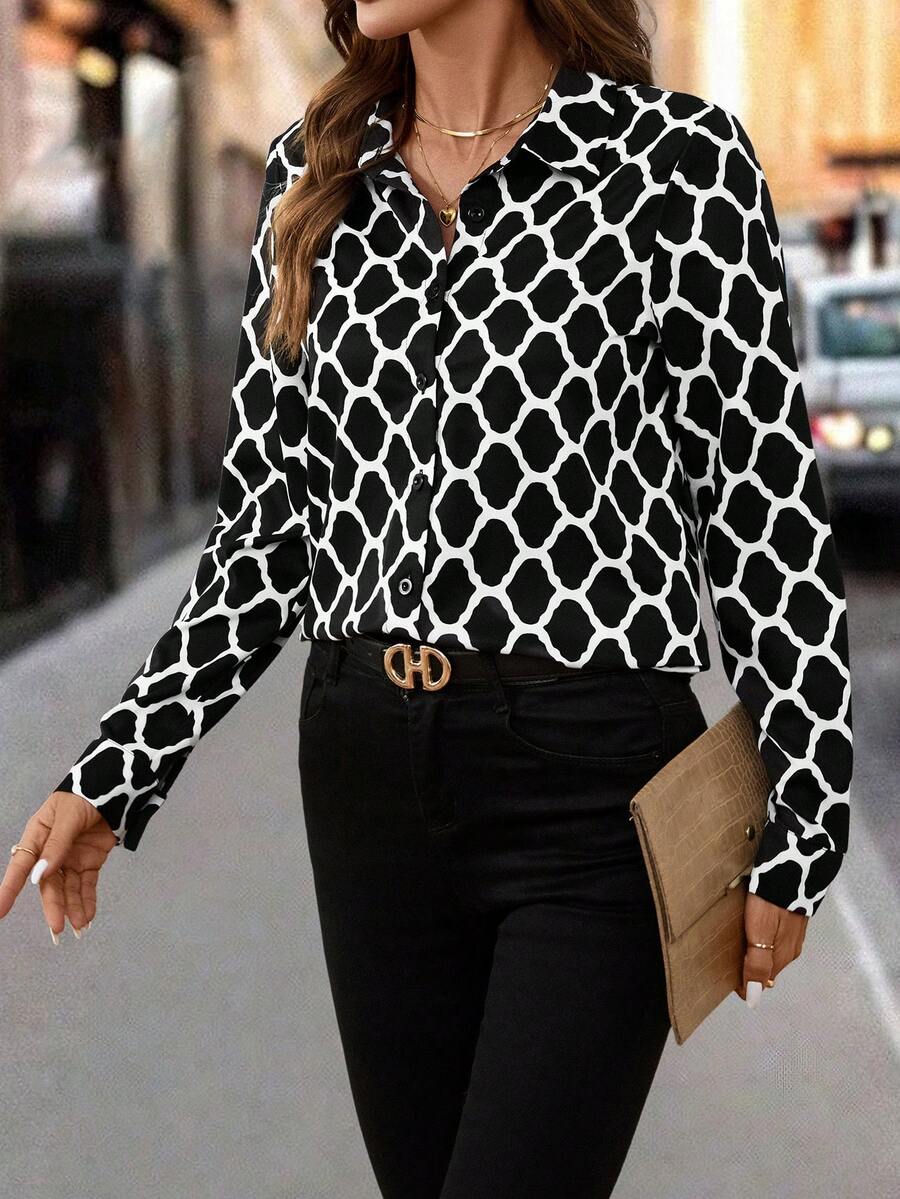 Women's Allover Print Button Up Long Sleeve Shirt
