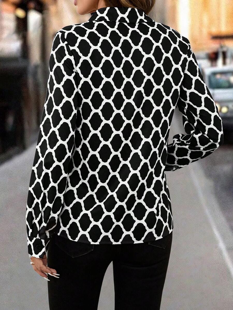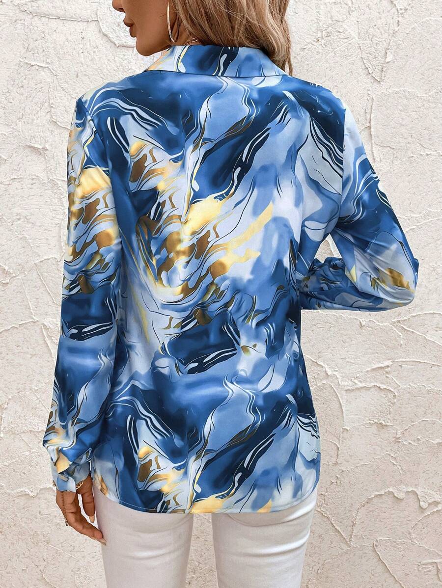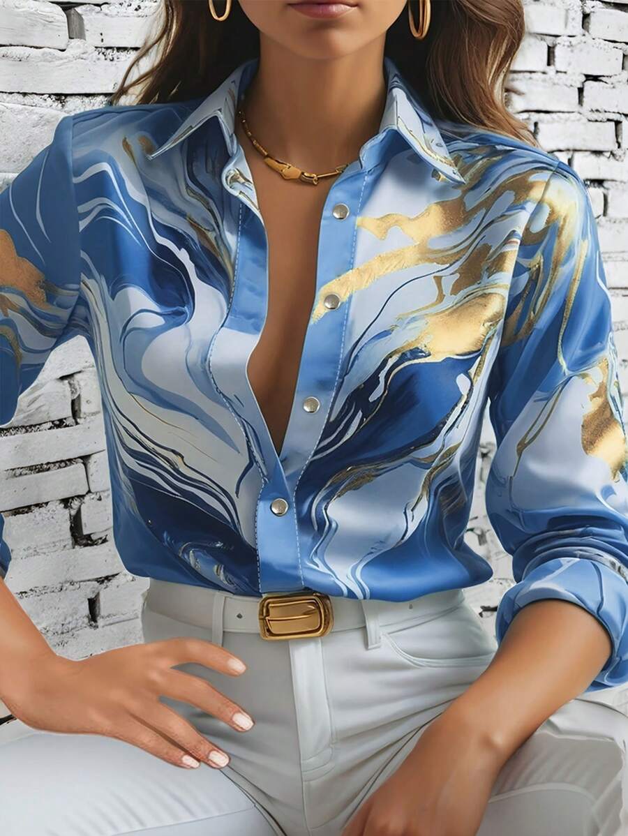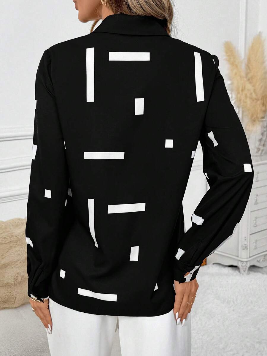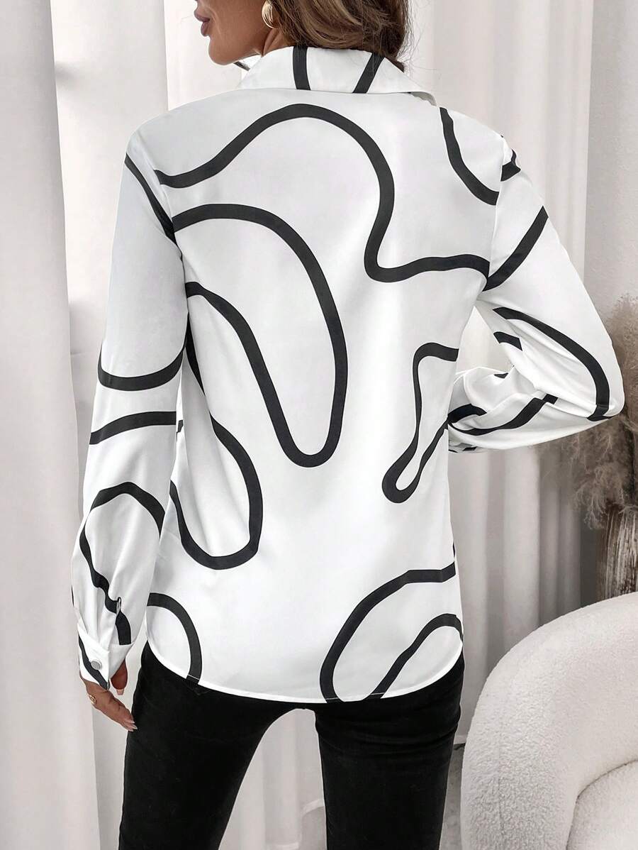 Women's Allover Print Button Up Long Sleeve Shirt