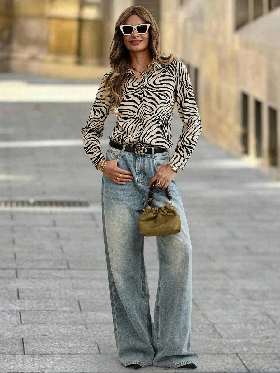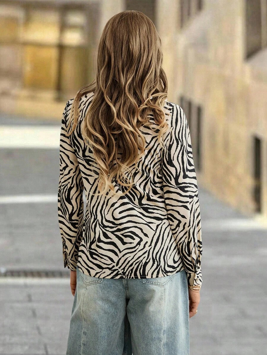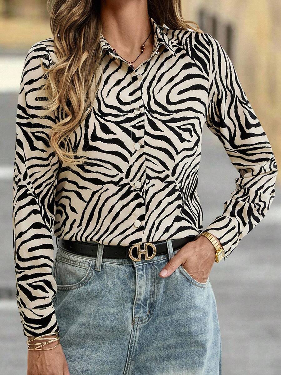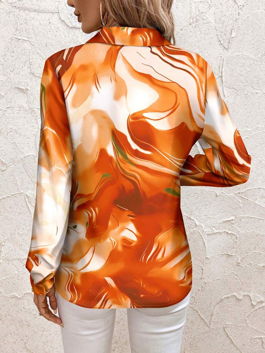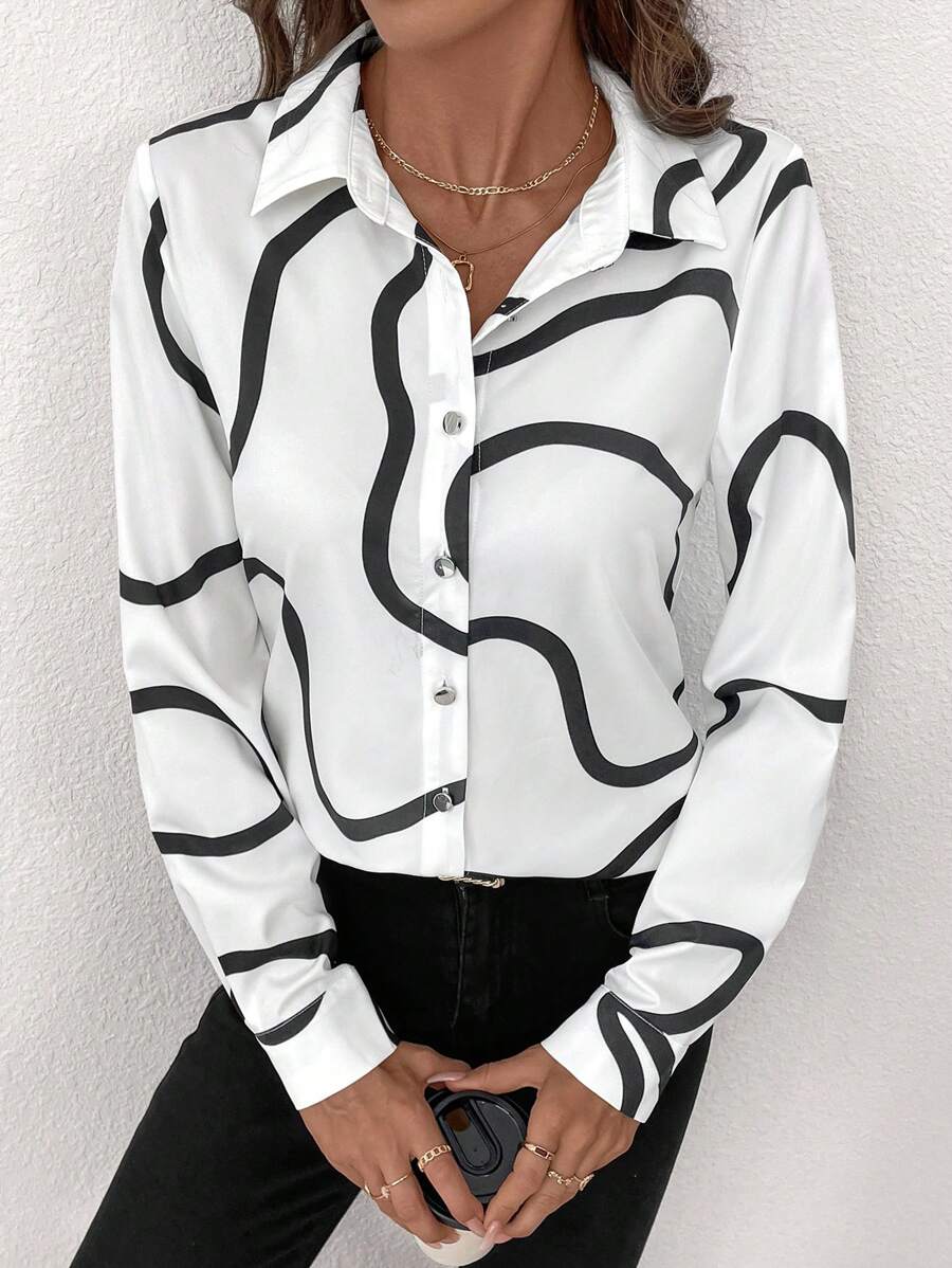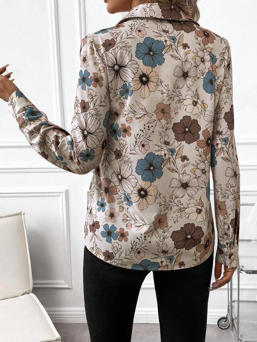 Women's Allover Print Button Up Long Sleeve Shirt