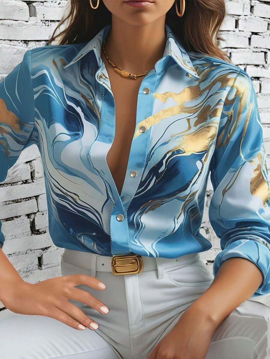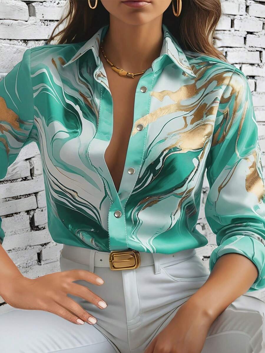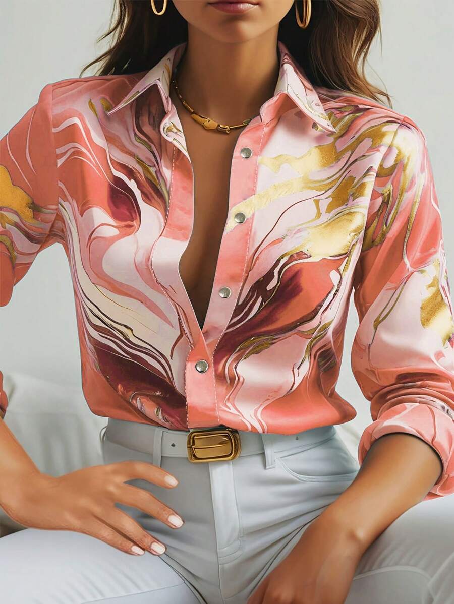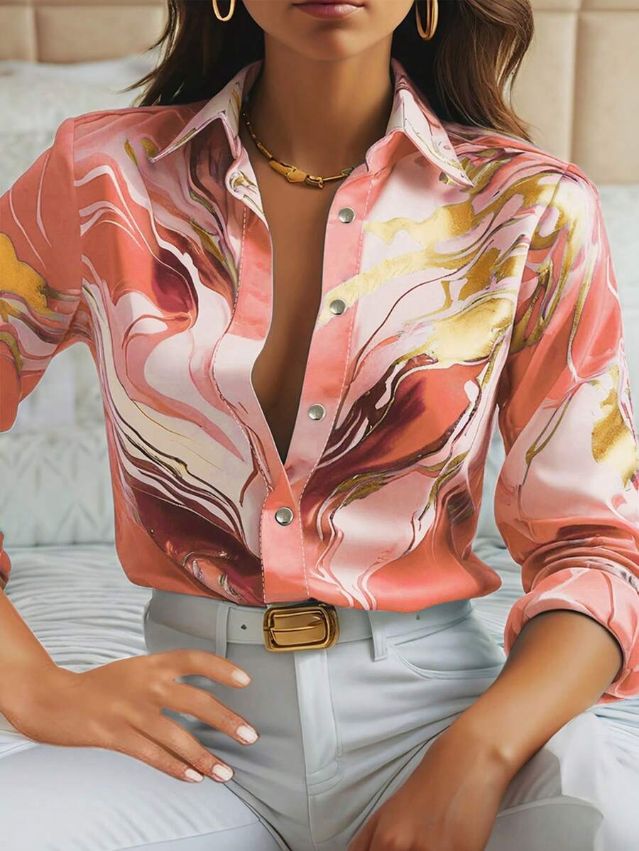 Turn heads wherever you go with this vibrant Women's Allover Print Button-Up Long Sleeve Shirt.