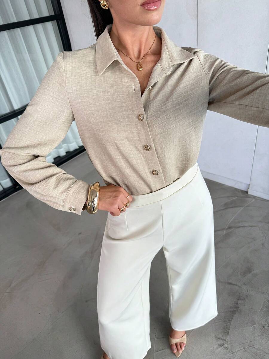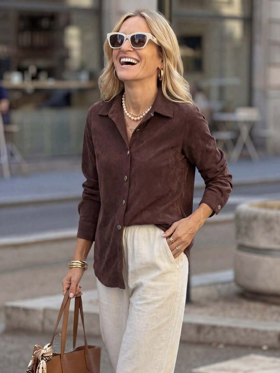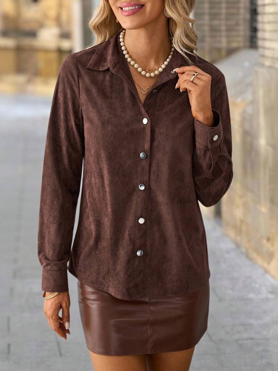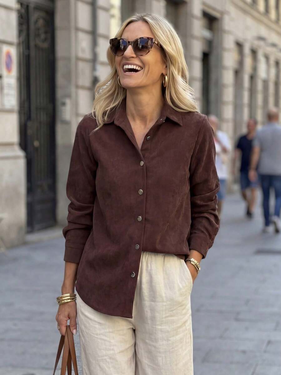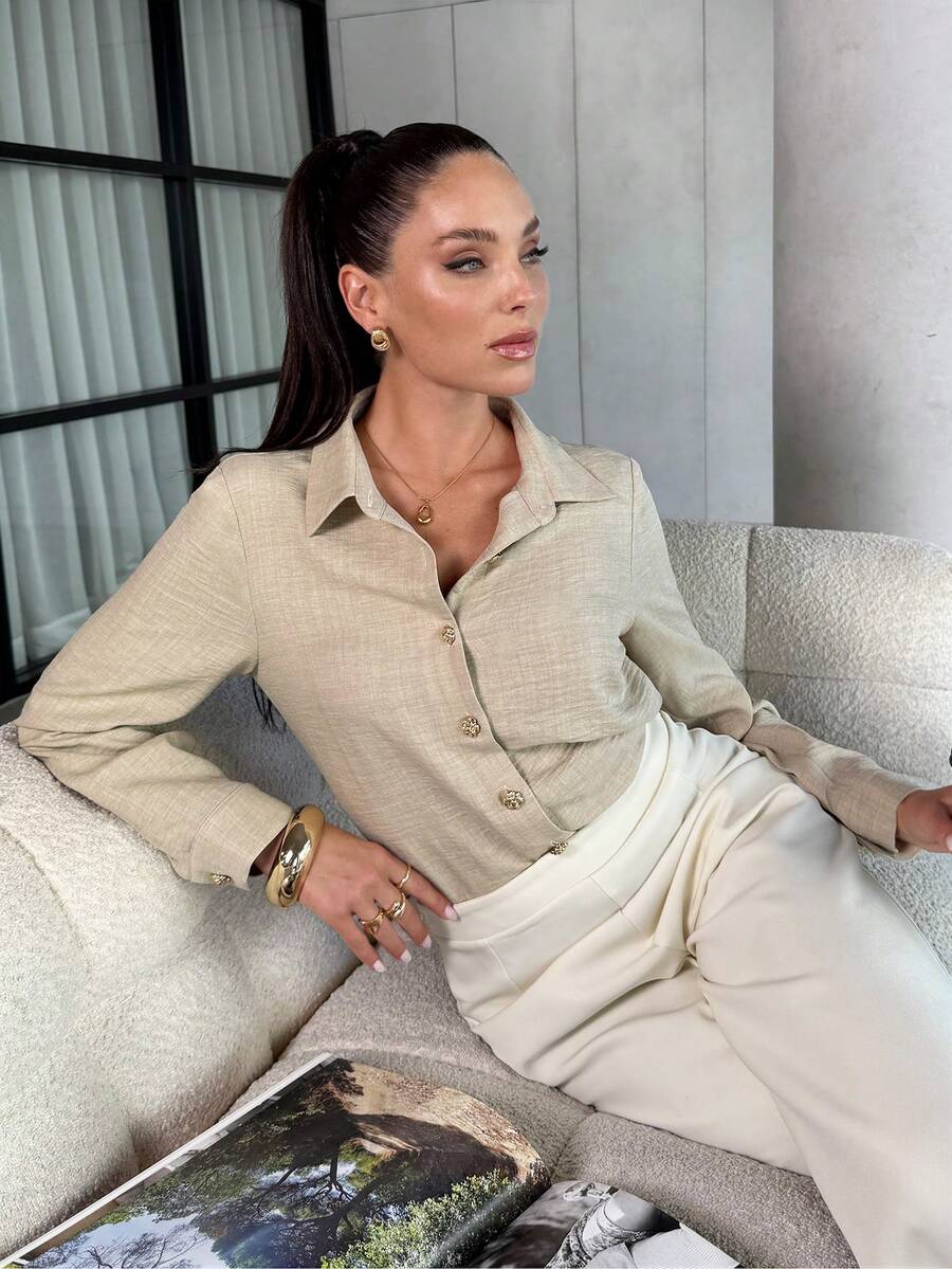 The lightweight fabric feels soft against your skin, while the classic button-up design keeps it versatile for any occasion—from casual brunches to office meetings or evening outings.