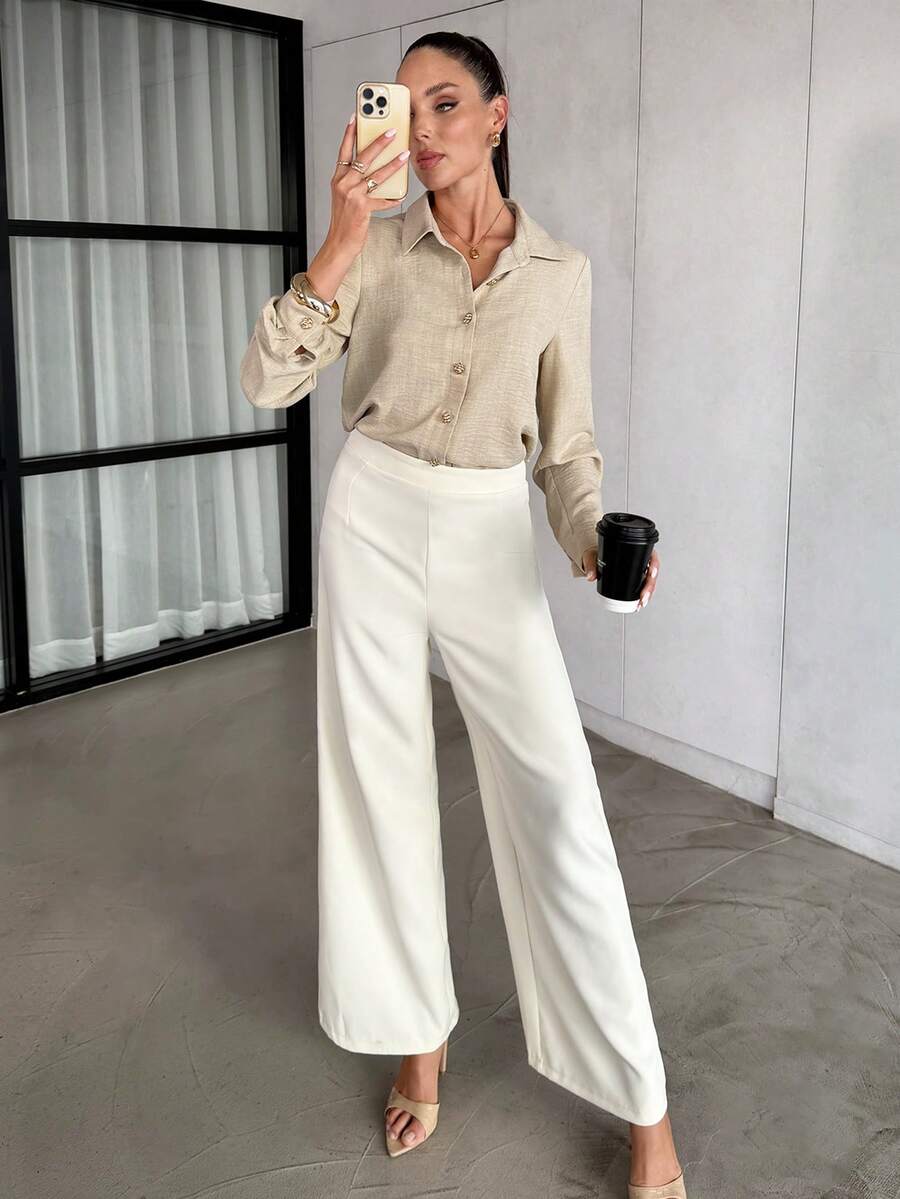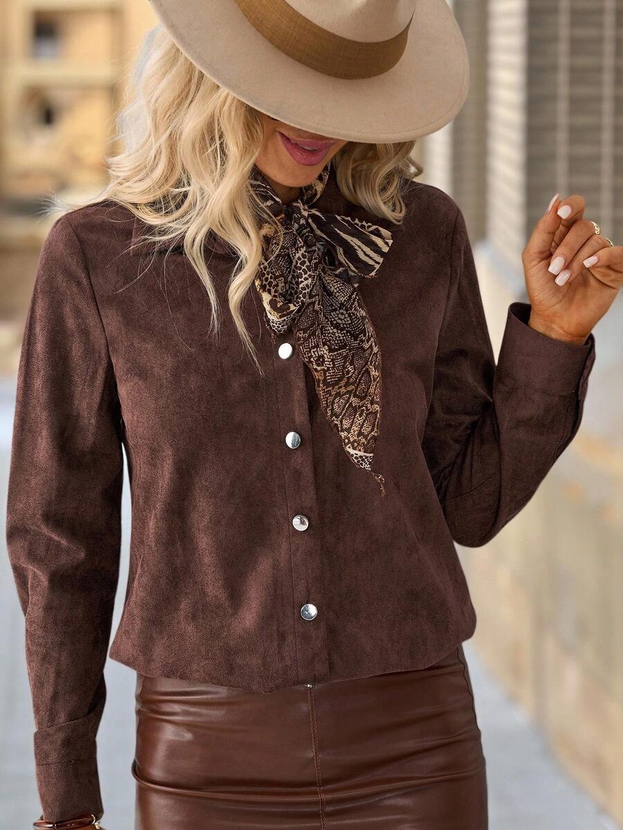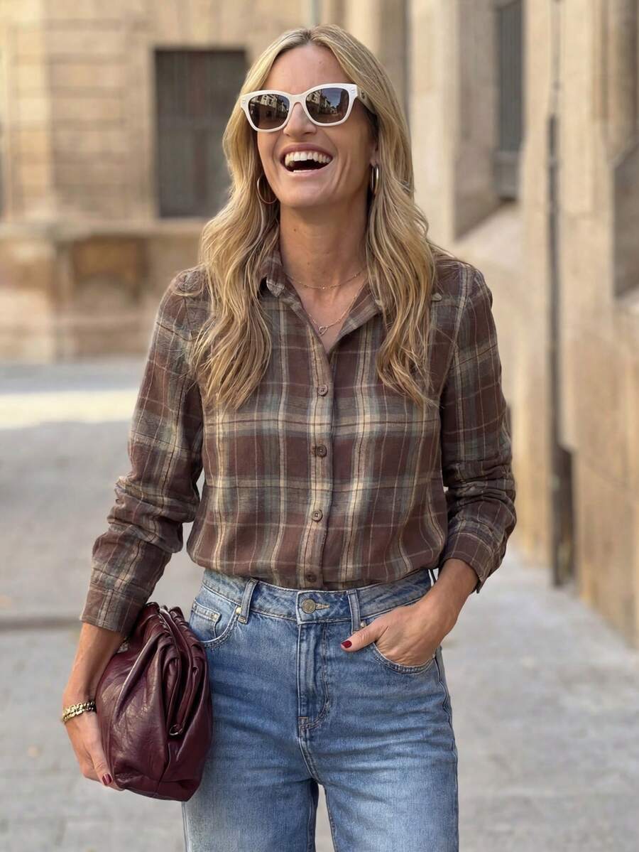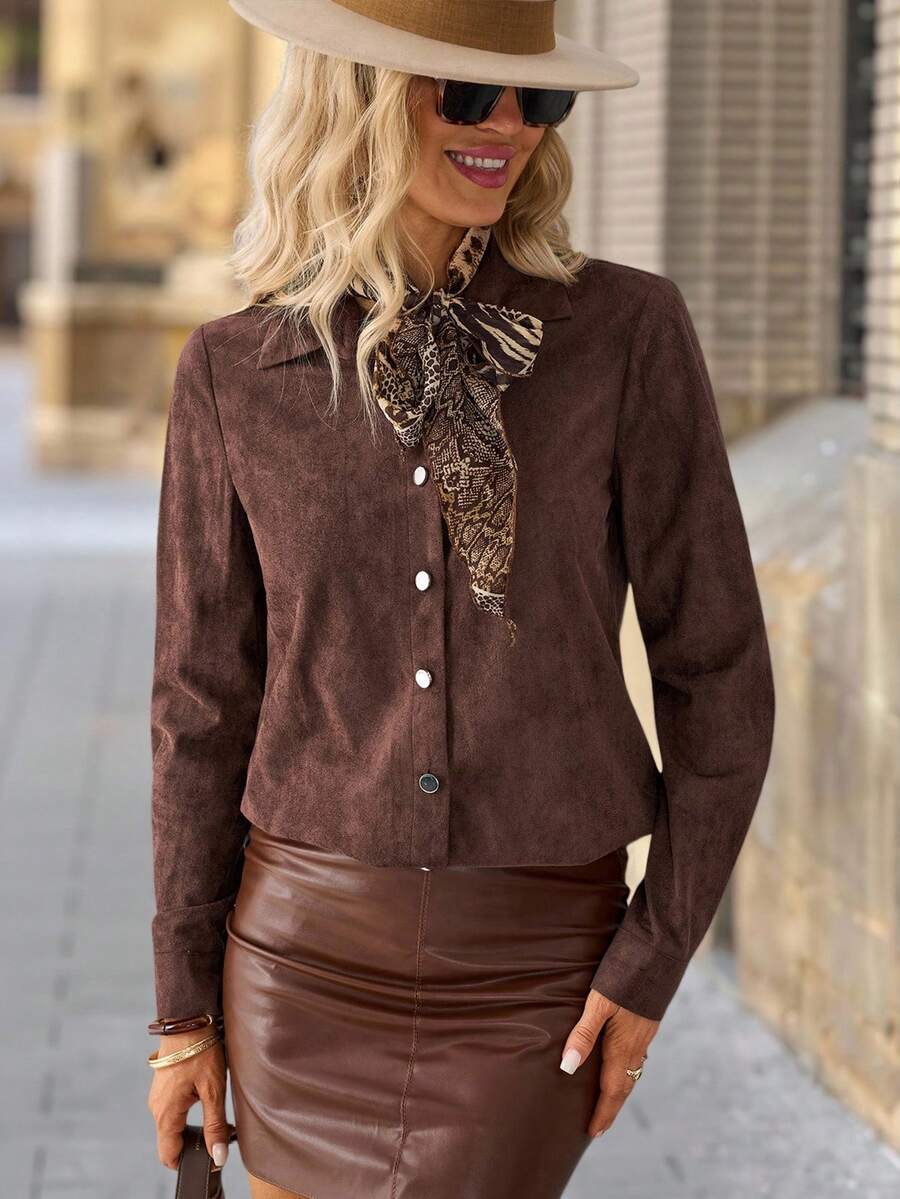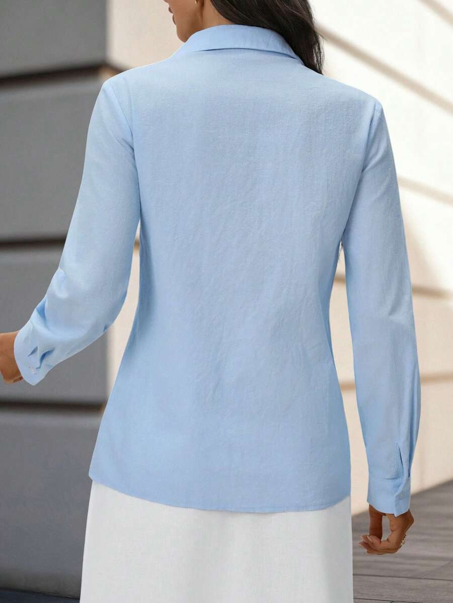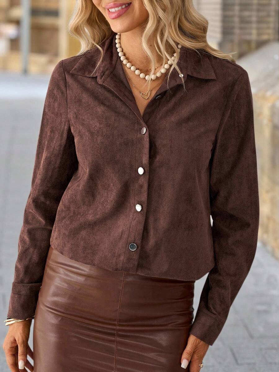 The lightweight fabric feels soft against your skin, while the classic button-up design keeps it versatile for any occasion—from casual brunches to office meetings or evening outings.